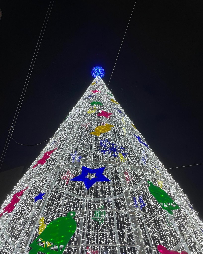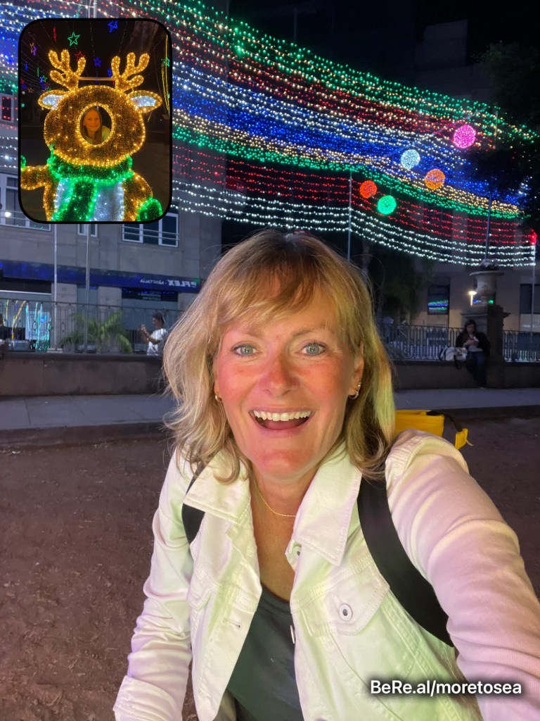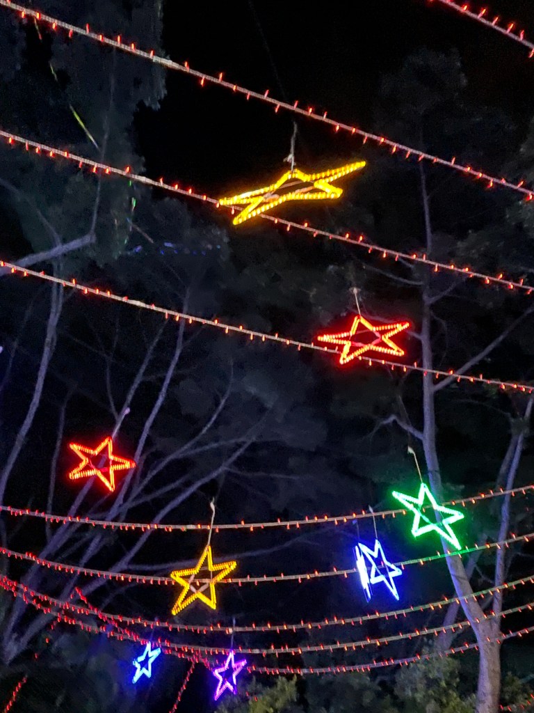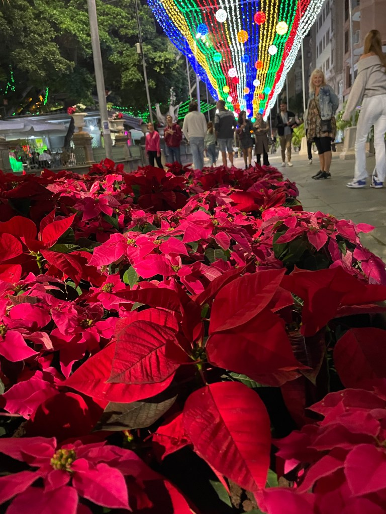 Santa Cruz viert kerst heel uitbundig, dat wordt al snel duidelijk als je de stad in loopt. Overal wordt kerstversiering opgehangen, vaak voorzien van kleurrijke verlichting. Iedere dag komt er iets bij. Wat een werk! Er worden zelfs overal kerststerren (die plant met rode blaadjes) geplant… zouden ze die na kerst weer allemaal weghalen? Wij hebben het niet kunnen checken, want toen waren we al weg 😉.