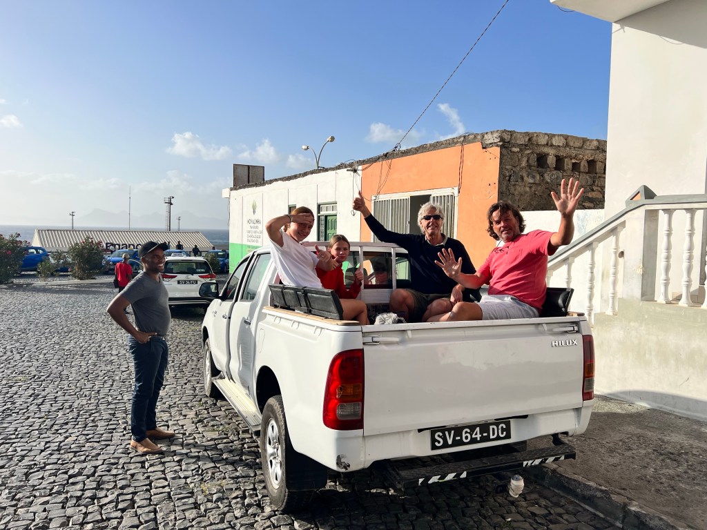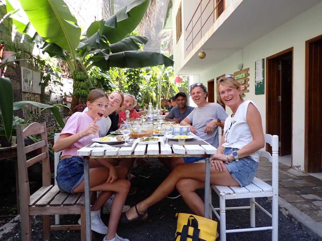 Santo Antão is het eiland boven São Vincente en staat bekend om de fantastische wandelroutes en leuke guesthouses (voor wandelaars die meerdaagse tochten maken). De trails schijnen niet voor watjes te zijn en de knie van Dirk-Jan plus de gezichten van Merlijn en Olivia toen ze over het ‘wandelen’ hoorden zorgen ervoor dat deze watjes een tour boeken met gids èn auto.