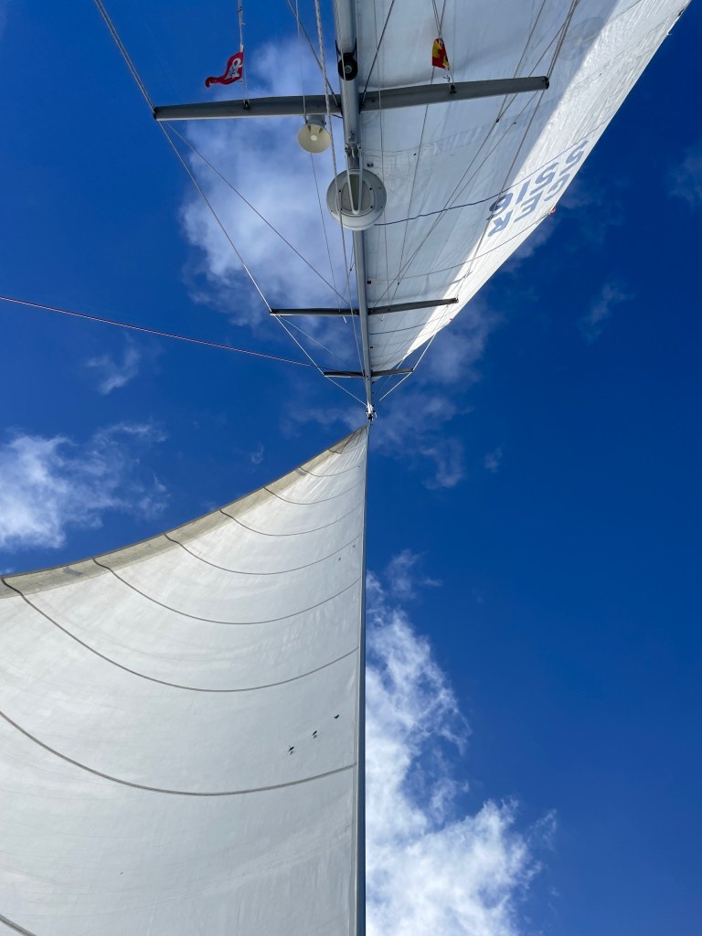 Met behulp van Dirk-Jan, ons bemanningslid met twee rechterhandjes, is er ook flink geklust. Een nieuwe onderlijkstrekker door de giek, alle reeflijnen vervangen, saildrive-olie onderzoek …