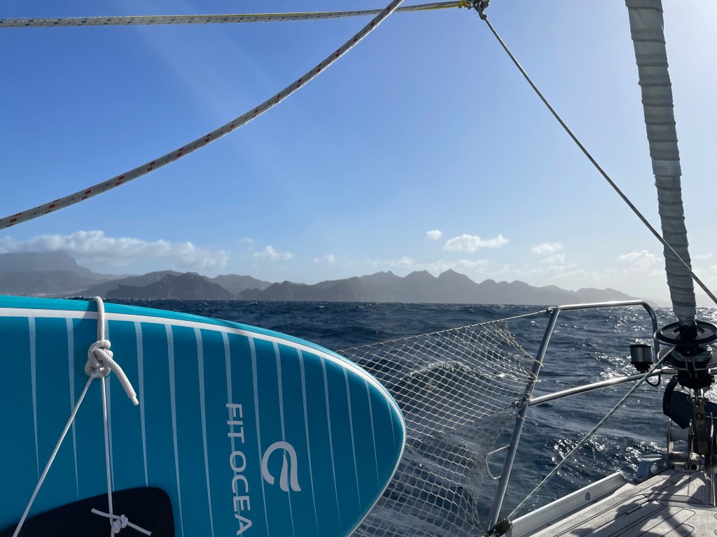 Onze eerste oversteek als 6-koppige crew is begonnen. Erik was nog geen 12 uur aan boord voordat hij de zee op geslingerd werd, maar hij paste zich snel aan. De eerste dagen zijn we altijd een beetje hangerig en onze opstappers waren een beetje zeeziek, maar dat ging al snel beter en de trip vloog voorbij! Na 5 dagen komen we aan op São Vincente in Kaapverdië en vieren we het eerste deel van onze grote oversteek in de floating bar van Mindelo.