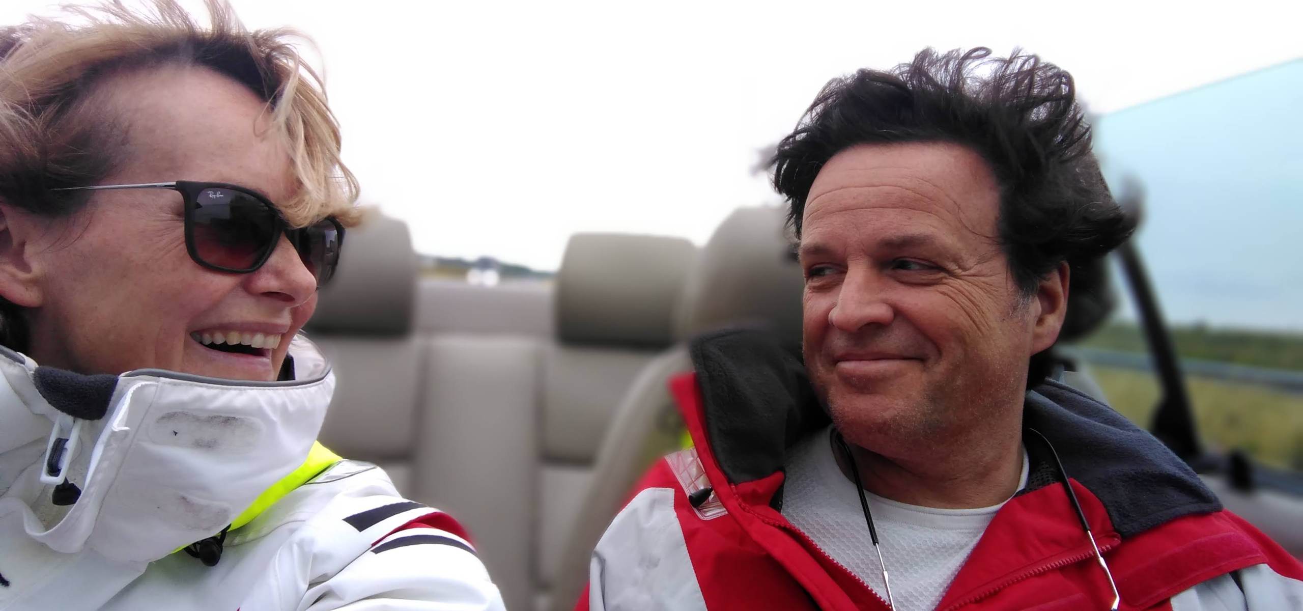 Lachend op weg naar huis. Best wel opgelucht dat de resultaten van de aankoopkeuring zo goed waren! Super spannende tijden, want we zijn een prachtige Grand Soleil 46.3 aan het kopen....